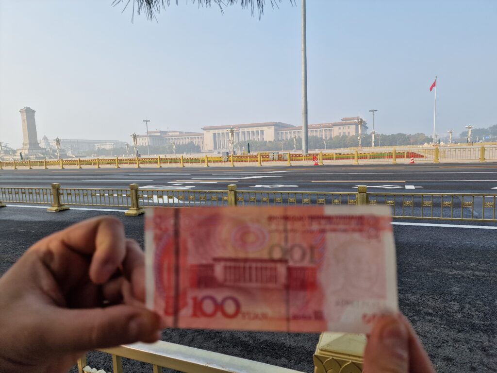 Como curiosidad también os puedo contar, que la imagen que obtuvimos desde esta calle, es la que aparece en los billetes de 100 yuanes. Al fondo el llamado Gran Salón del Pueblo, que sirve como salón de recepciones para invitados de Estado y como sede de celebraciones nacionales.