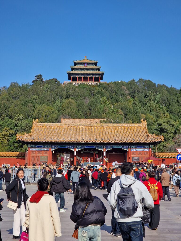 Tras salir por la puerta Norte, obtuvimos de frente la vista de la colina del carbón, o también llamado parque Jingshan. Un parque desde el que se obtienen unas vistas muy bonitas de toda la ciudad prohibida desde lo alto. Peeero nosotros decidimos no incluirlo en nuestra visita y nos optamos por visitar el parque Beihai.