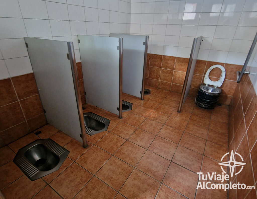 Un detalle importante: no busques el papel higiénico dentro del habitáculo del váter. Si hay (que muchas veces no), suele estar en la entrada del baño, en un dispensador común. Y en algunas ocasiones hemos visto que tenías que pagar por papel higiénico a través de un código QR. Tampoco suele haber jabón ni secamanos, así que un botecito de gel desinfectante te sacará de más de un apuro.