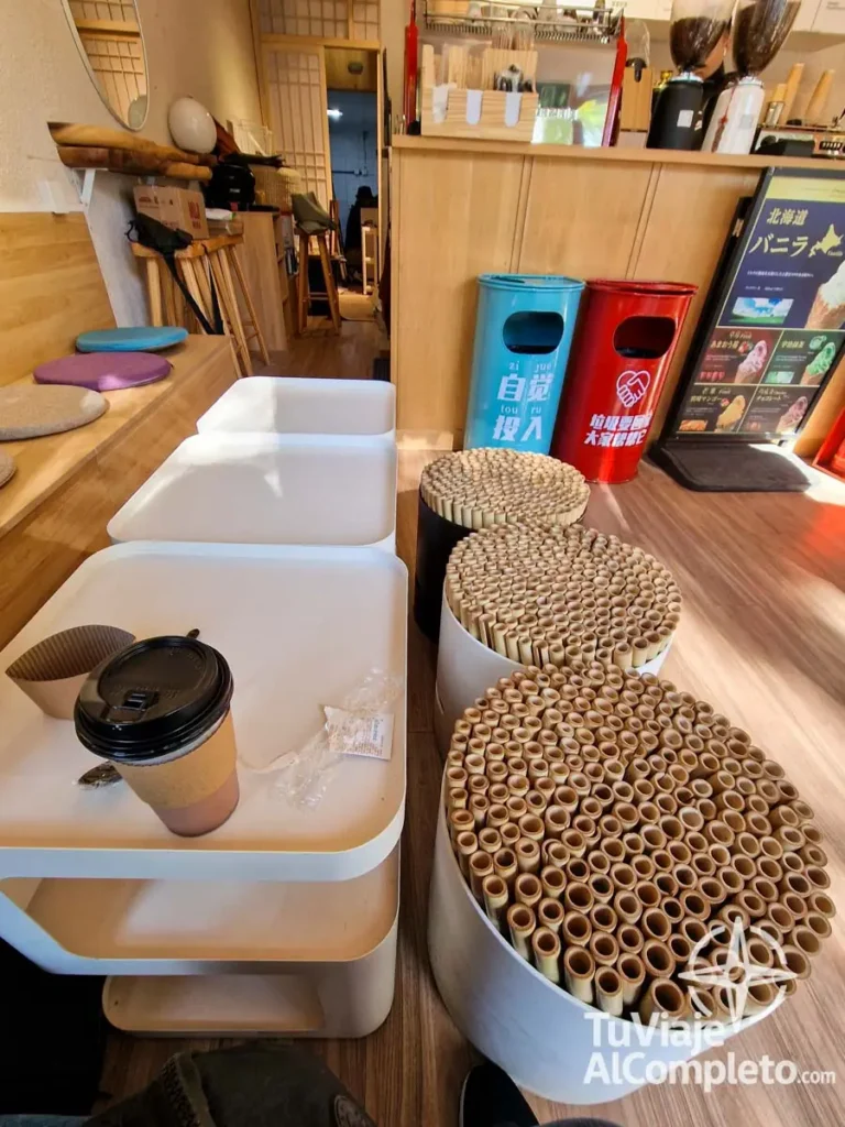 Caminamos por un sendero con árboles y llegando a la puerta de entrada, vimos que repartían palos de incienso que utilizan para rezar y pedir deseos. Todo el mundo llevaba varios en la mano, así que decidimos coger unos también.