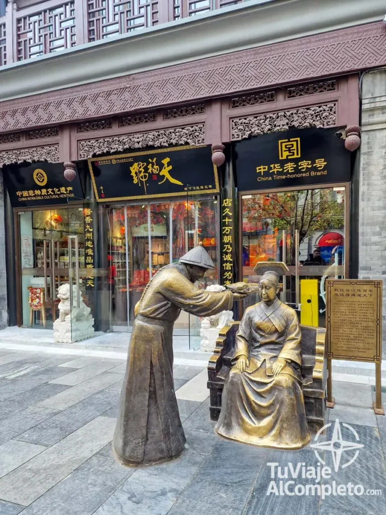 También leímos que en Qianmen se concentran varias de las marcas históricas más famosas de Pekín, conocidas como “China Time-honored Brands”. Aquí puedes encontrar locales emblemáticos como la farmacia Tongrentang, la zapatería Neiliansheng o varias casas de té y restaurantes centenarios, lo que hace que aún conserve ese aire de calle comercial tradicional de otras épocas.
