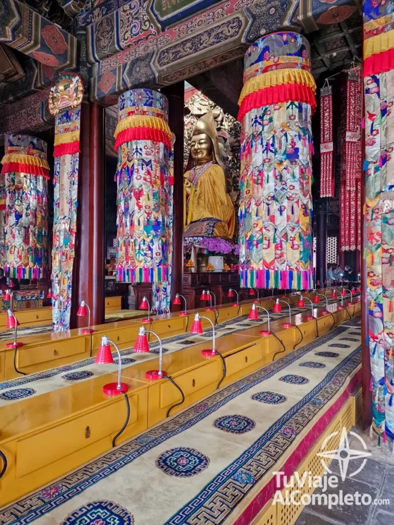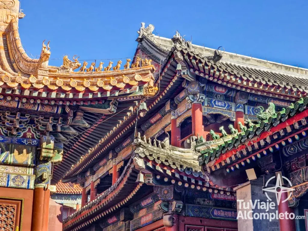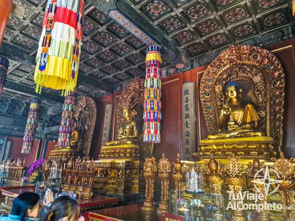 El templo estaba formado por una sucesión de patios y edificios alineados en un eje central, siguiendo la arquitectura tradicional china. A medida que avanzábamos, íbamos atravesando diferentes patios, pabellones y salas de oración, cada uno más impresionante que el anterior.