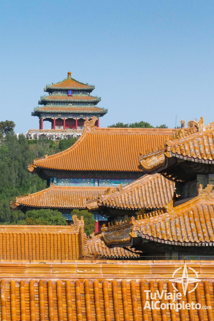 Cuando se excavó el enorme foso que rodea la Ciudad Prohibida, toda esa tierra no se desperdició. Se utilizó para construir una colina artificial justo al norte del complejo: el Parque Jingshan (también conocido como “la Colina del Carbón”).