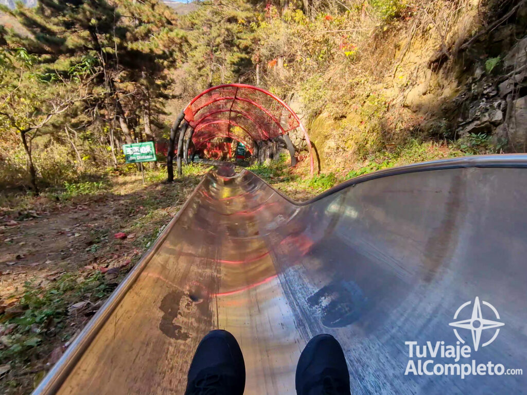 Aunque en realidad soy un poco cagueta para este tipo de cosas y al principio iba con bastante miedo, la verdad es que fue divertidísimo. El asiento lleva una palanca a modo de freno con la que puedes regular la velocidad si no te gusta ir demasiado rápido. El recorrido dura unos 5 minutos y, sinceramente, fue una experiencia super divertida que recomendaría sin dudarlo!