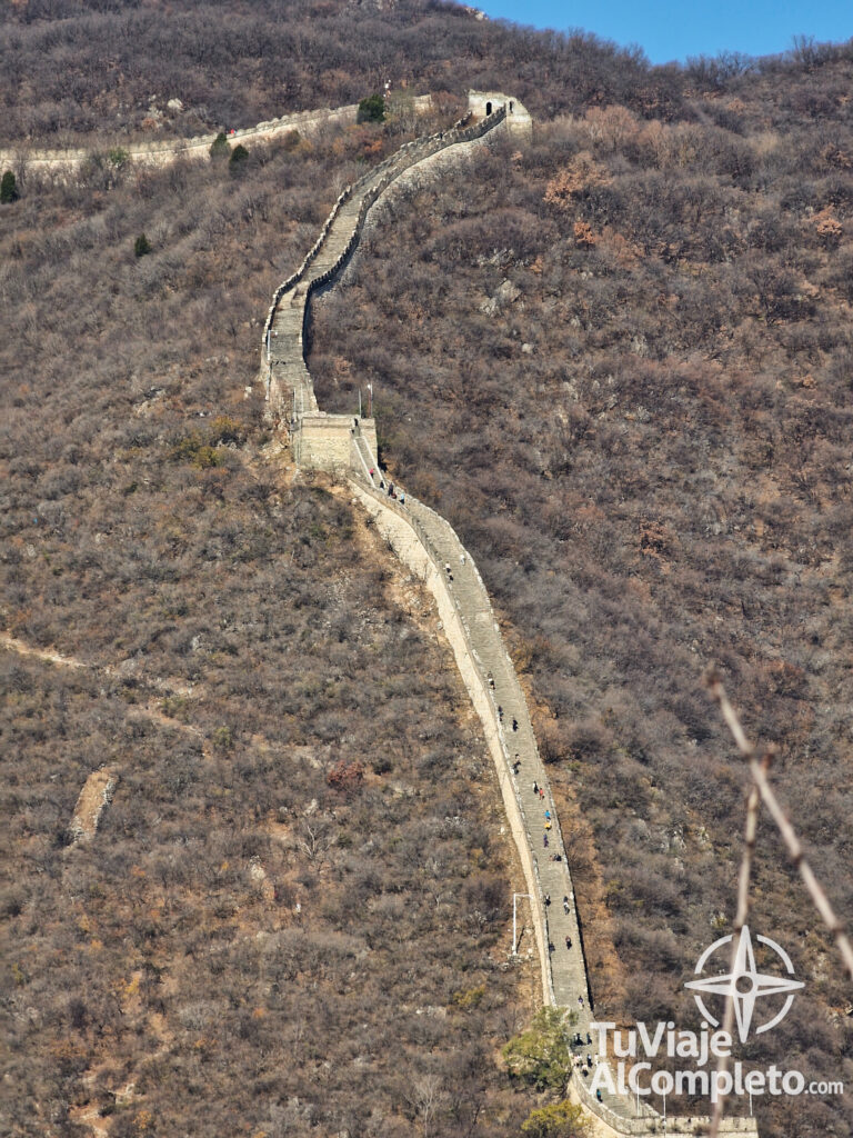 Las vistas son realmente alucinantes, mires hacia donde mires. Si miras hacia delante, ves cómo la Muralla se va perdiendo entre montañas y torres que parecen no tener fin. Y si echas la vista atrás, la imagen es igual de impresionante, con todo el camino recorrido serpenteando sobre las colinas. Es uno de esos paisajes que se te quedan grabados para siempre.