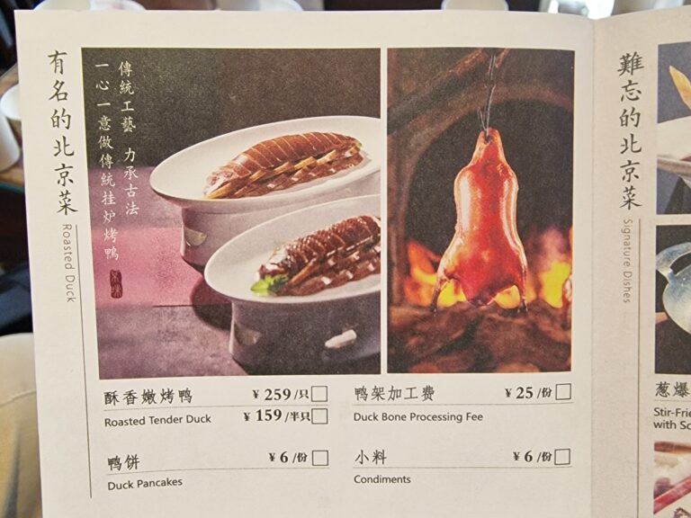 Es un lugar con mucha tradición y ambiente local, menos turístico que Quanjude pero igual de histórico. Si quieres probar una versión diferente del pato laqueado, merece la pena incluirlo en la lista.