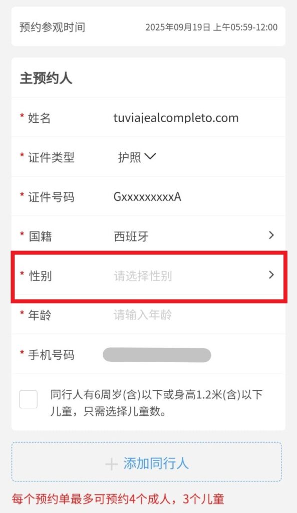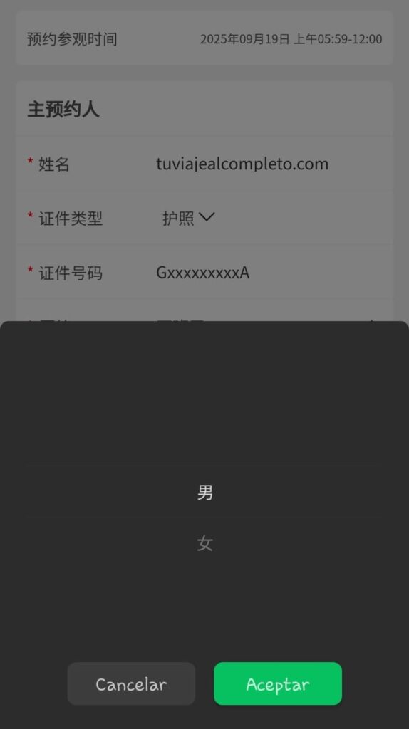 10. Elige tu género en «性别«. (男 – masculino)(女 – femenino)