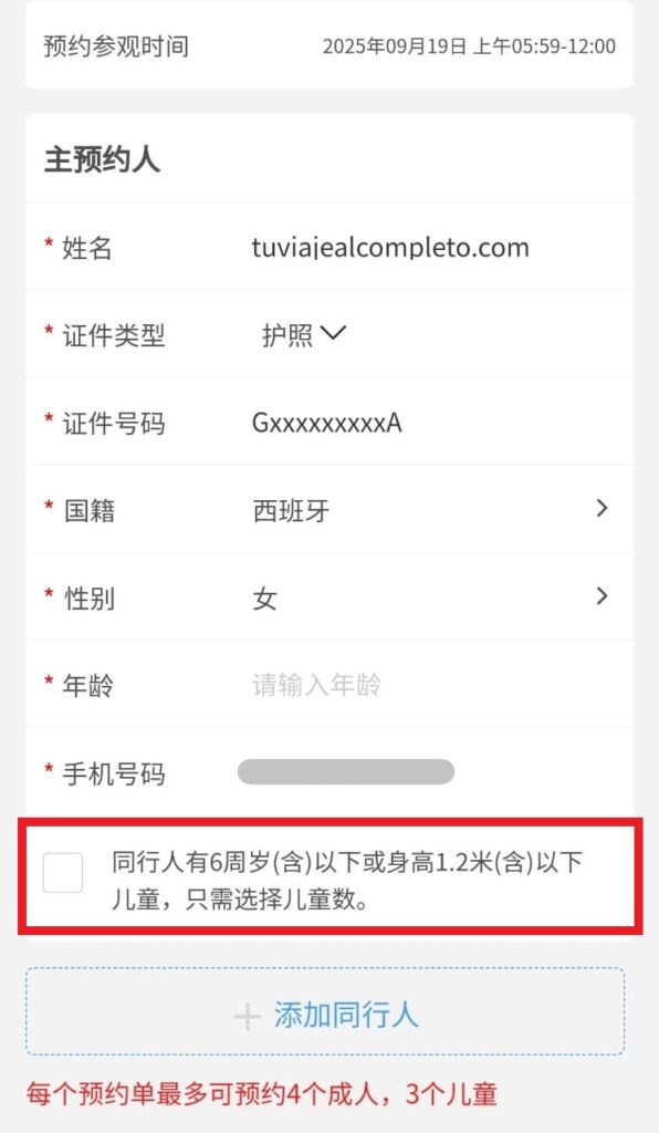 11. Selecciona esta casilla si…“Si entre los acompañantes hay niños menores de 6 años o con una altura inferior a 1,20 m, solo tendrás que indicar el número de niños.”