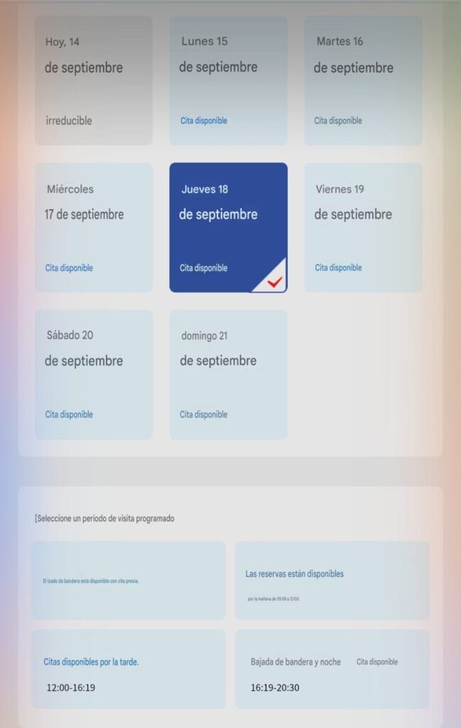 4. Elige el día y la hora para tu visita y pulsa en confirmar abajo del todo.