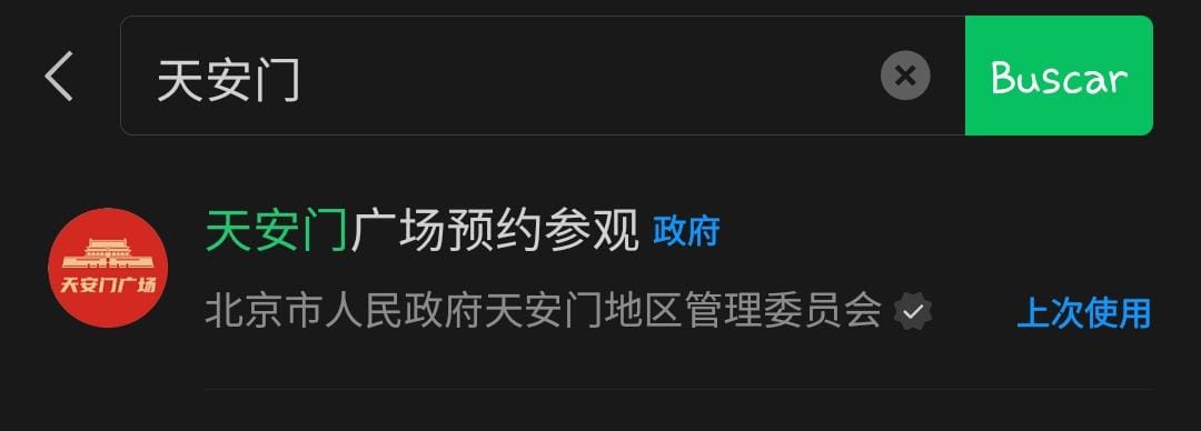 4. En el buscador, escribe “天安门” (Plaza Tianmen en chino) y selecciona este resultado.