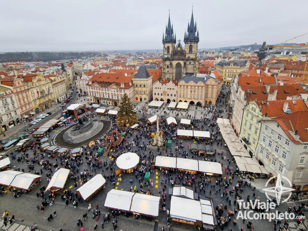 Después del desfile, te recomiendo subir a la torre del Ayuntamiento para disfrutar desde arriba de una de las panorámicas más bonitas de Praga, con toda la plaza extendiéndose a tus pies.