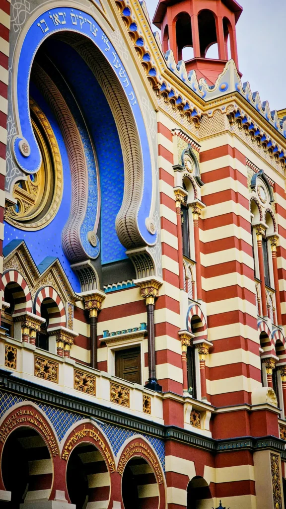 La Sinagoga de Jerusalén es la más colorida y llamativa de Praga. Fue construida en 1906 y destaca principalmente por su estilo neo-morisco y sus colores vibrantes e intensos como los rojos, azules y dorados. Es totalmente diferente a las sinagogas históricas del Barrio Judío, lo que la convierte en una visita muy fotogénica.